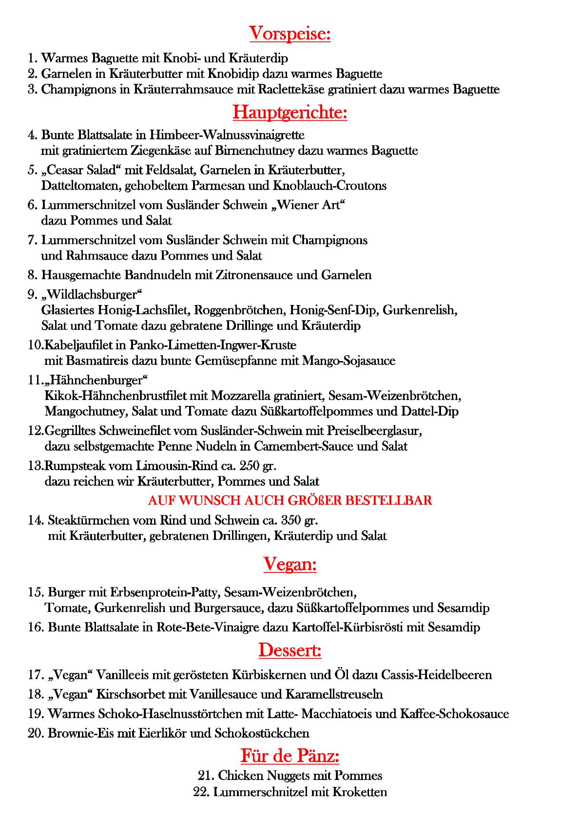 Sonntag und Montag jeweils ab 17.00 Uhr geöffnet!